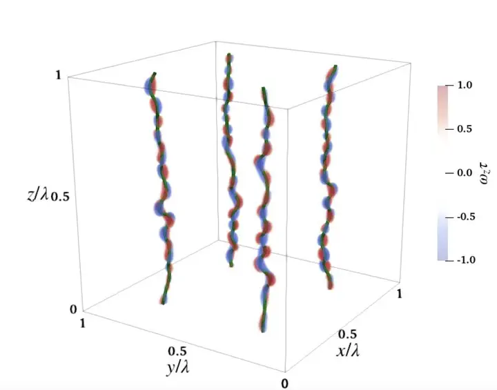 Kelvin waves and normal fluid structures obtained with self-consistent model FOUCAULT